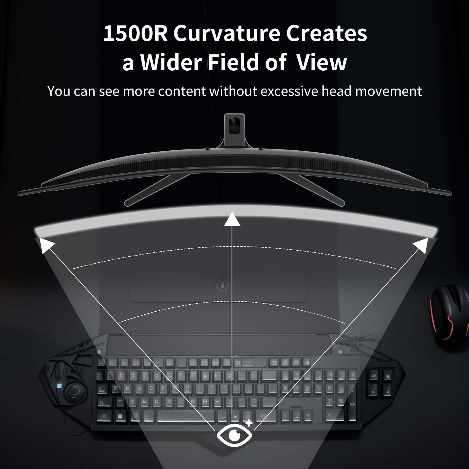 Pantalla curva 1500R con resolución WQHD, 180 Hz y 1 ms. Colores HDR vívidos, diseño ergonómico y experiencia fluida sin parpadeos.